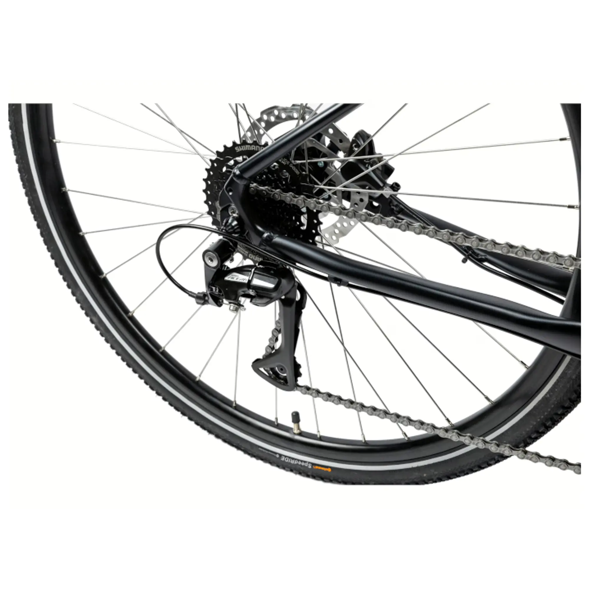 Crono 3 má solidně lehké ráfky Mach1 a kvalitní pláště Continental Speedride 42-622, se kterými se nemusíte bát vjet i na šotolinovou cyklostezku či hladkou lesní cestu.